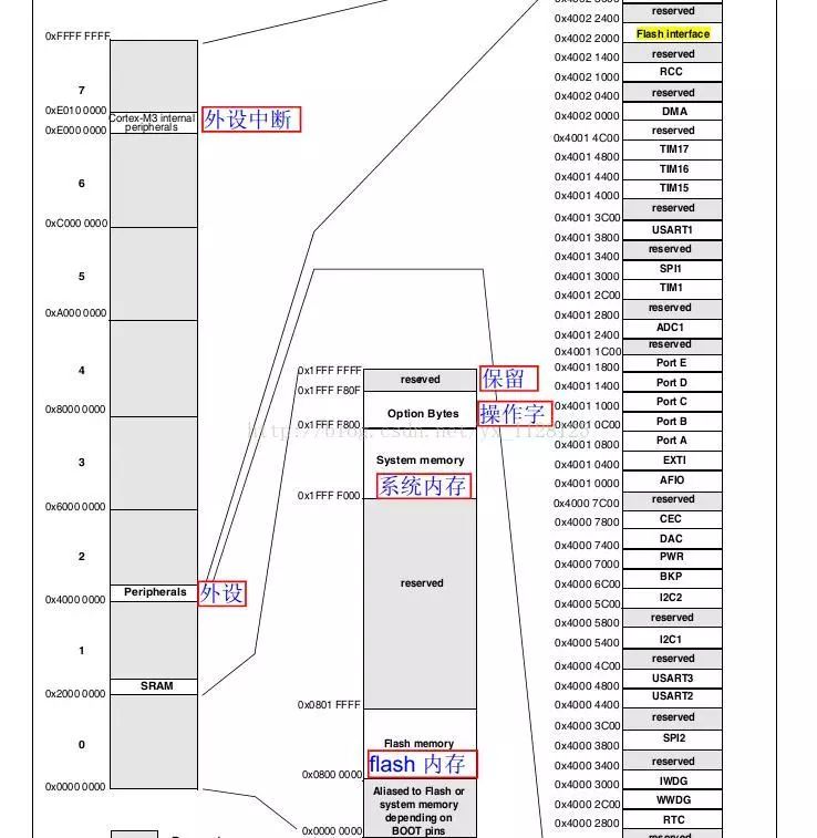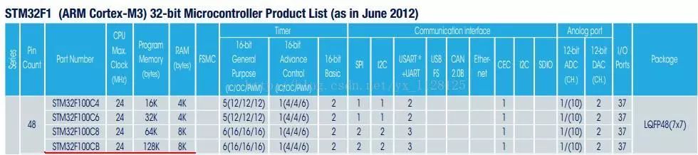 下圖在stm32f100芯片手冊的29頁,我們只截取關(guān)鍵部分