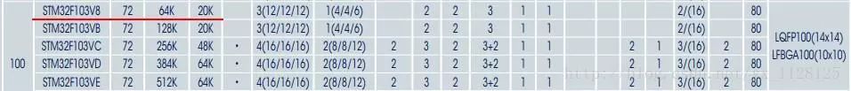cl:互聯(lián)型產(chǎn)品,stm32f105/107系列vl:超值型產(chǎn)品,stm32f100系列xl:超高密度產(chǎn)品,stm32f101/103系列l(wèi)d:低密度產(chǎn)品,F(xiàn)LASH小于64Kmd:中等密度產(chǎn)品,F(xiàn)LASH=64 or 128hd:高密度產(chǎn)品,F(xiàn)LASH大于128