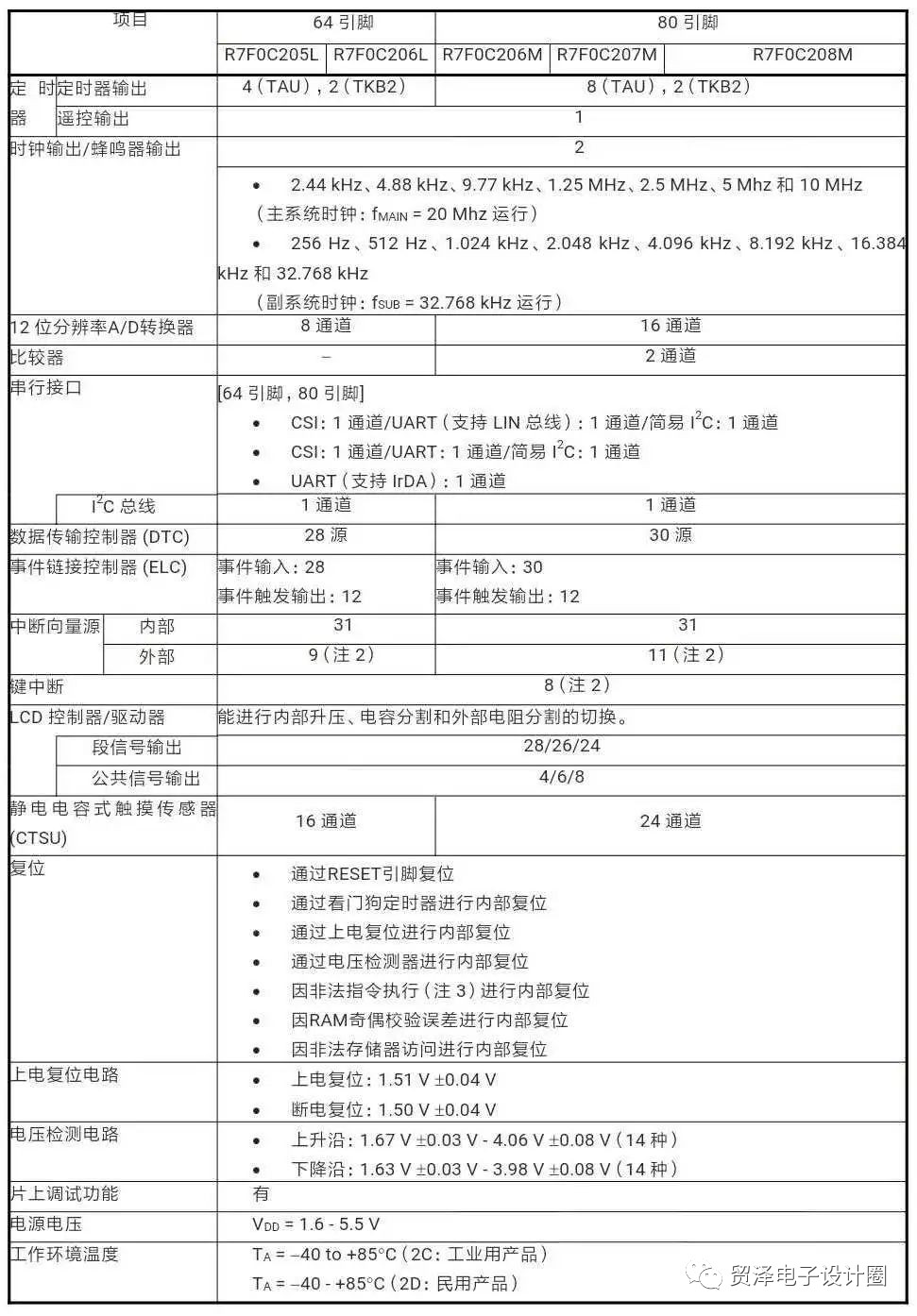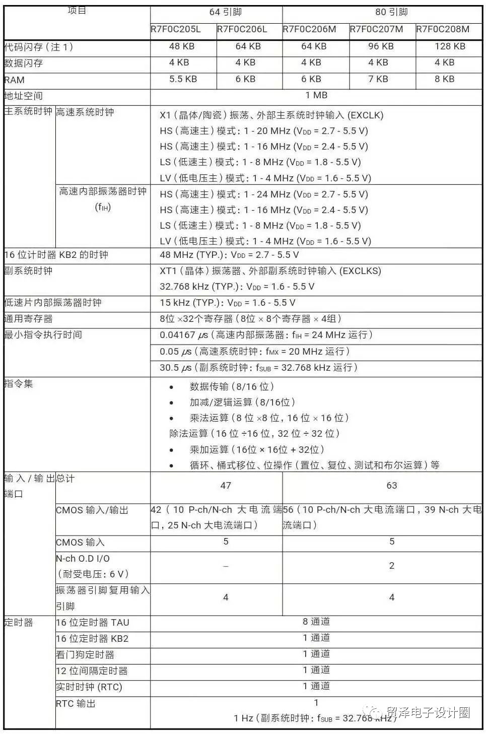 R7F0C205L、R7F0C206L、R7F0C206M、R7F0C207M 和 R7F0C208M 微控制器產(chǎn)品規(guī)格