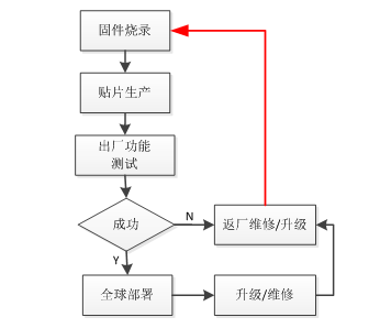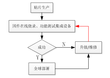改進(jìn)后的流程將固件生產(chǎn)、功能測試整合為一體,規(guī)劃出一個新型的生產(chǎn)測試設(shè)備,可隨時隨地對設(shè)備進(jìn)行生產(chǎn)、升級、維修、測試。用戶僅需將該設(shè)備部署到需要覆蓋的各個網(wǎng)點(diǎn),即可解決升級、維修等問題。該流程更加方便、更加高效,而且會減少終端用戶因故障返修影響正常使用等問題。