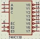 這時可以借助擴展芯片來實現(xiàn),比如三八譯碼器74HC138來拓展