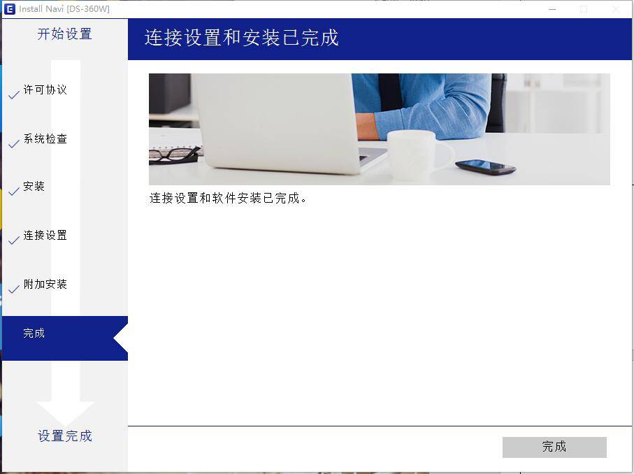 介紹完產品的基本情況,下面我們來看一看該機的連接與安裝。作為一款便攜式設備,DS-360W支持USB連接與無線連接兩種模式,這樣設計也是針對移動辦公應用而推出。此外,驅動程序安裝也是必備不可少,安裝步驟十分簡單,用戶根據界面提示就可以完成相關操作。