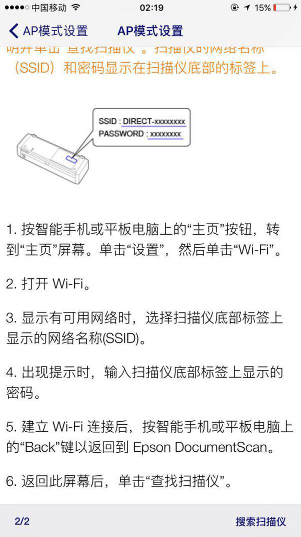 作為移動辦公的急先鋒,該機內置Wi-Fi功能,可以為用戶提供便捷的移動掃描體驗。具體來看,用戶使用的移動設備可以下載Epson DocumentScanApp,安卓及蘋果用戶均可下載使用。而連接步驟也是非常簡單,愛普生DS-360W掃描儀提供兩種無線連接模式,第一種就是將掃描儀與移動設備置于同樣的網絡環(huán)境內,就可以連接進行掃描操作。第二種,就是使用掃描儀的AP無線直連功能,掃描儀釋放無線信號與移動設備直接相連,顯然無線AP更加簡單易用,但是有連接數量限制;而第一種連接模式不受連接數量限制,兩種連接方式各有優(yōu)勢。具體連接方式在移動端App上都有詳盡的介紹,非常簡便易用,這里我們就不過多介紹了。