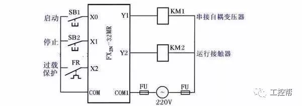 PLC的輸出信號:運行接觸器KM2、串接自耦變壓器接觸器KM1。