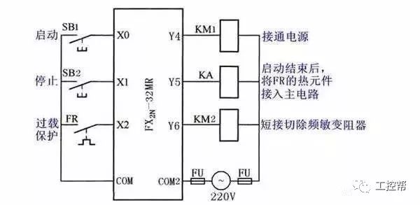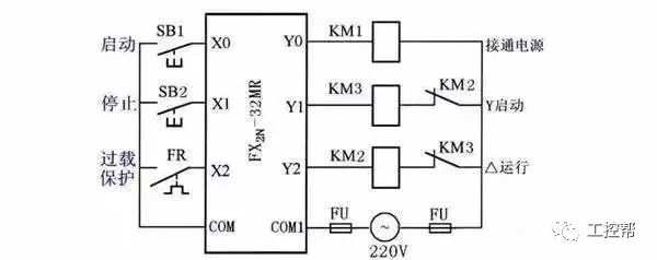 PLC的輸入信號:啟動按鈕SB1,停止按鈕SB2,熱繼電器常開觸點FR。