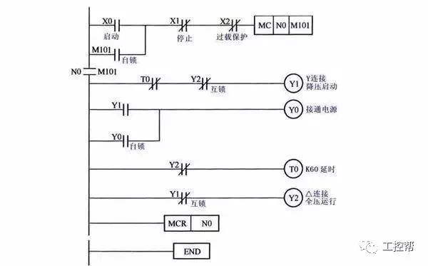 (2)設(shè)計三相異步電動機的Y-△降壓啟動梯形圖