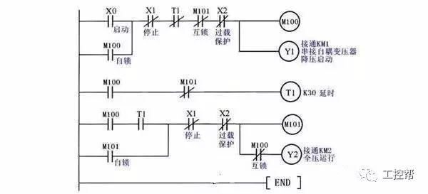三相異步電動機的串自耦變壓器降壓啟動控制梯形圖