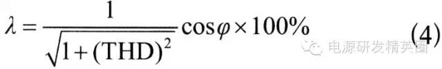 總諧波失真是指用信號源輸入時,輸出信號(諧波及其倍頻成分)比輸入信號多出的諧波成分,一般用百分數(shù)表示。功率因數(shù)(λ)與總諧波失真(THD)存在下述關系: