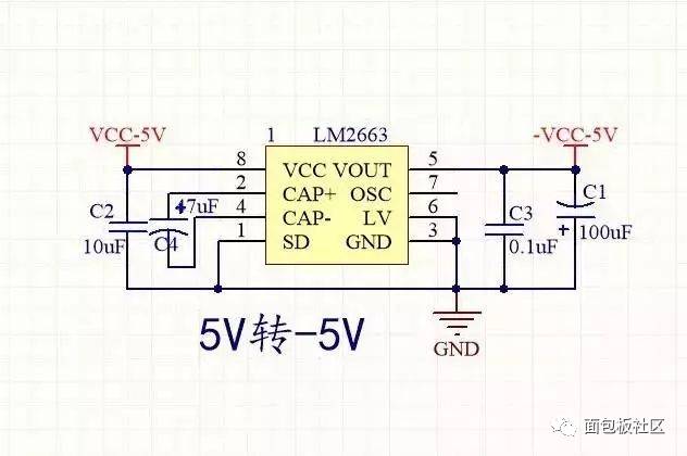 LM2663可作為一個簡單的負電壓轉(zhuǎn)換器,該電壓逆變器電路只使用兩個外部電容器。