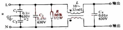 LED電源一般采用簡易式單級EMI濾波器,主要包括共模扼流圈和濾波電容。
