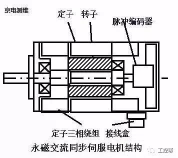 伺服電機內(nèi)部的轉(zhuǎn)子是永磁鐵,驅(qū)動器控制的U/V/W 三相電形成電磁場,轉(zhuǎn)子在此磁場的作用下轉(zhuǎn)動,同時電機自帶的編碼器反饋信號給驅(qū)動器,驅(qū)動器根據(jù)反饋值與目標值進行比較,調(diào)整轉(zhuǎn)子轉(zhuǎn)動的角度。伺服電機的精度決定于編碼器的精度(線數(shù))。