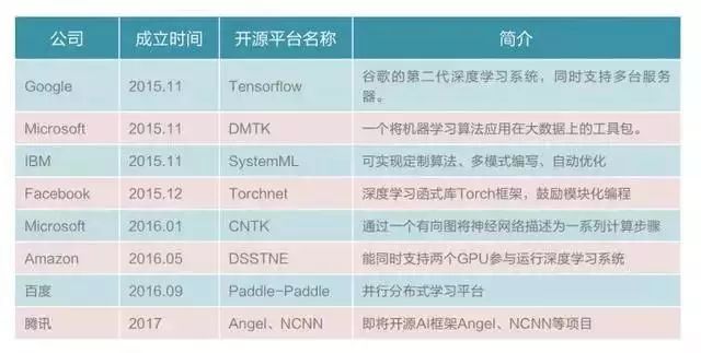 人工智能的常見開發(fā)框架包括谷歌的TensorFlow、Facebook的Torch、Microsoft的CNTK 以及IBM的SystemML。這些框架的地位類似于人工智能時代的iOS/Android。開源也成為了這些 軟件開發(fā)框架共同的策略。