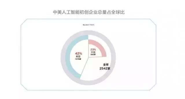 從全球范圍來看,人工智能領(lǐng)先的國家主要有美國、中國及其他發(fā)達國家。截止到2017年6 月,全球人工智能企業(yè)總數(shù)達到2542家,其中美國擁有 1078家,占據(jù)42%;中國其次,擁有592 家,占據(jù)23%。中美兩國相差486家。其余872家企業(yè)分布在瑞典、新加坡、日本、英國、澳大利亞、以色列、印度等國家。