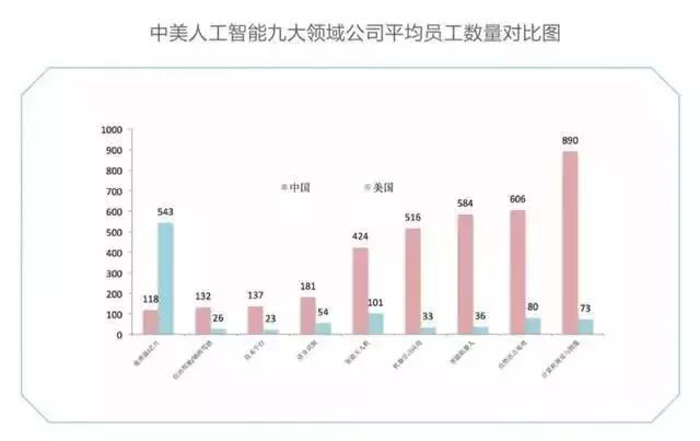 在自然語言處理領(lǐng)域,美國員工人數(shù)是中國的3倍,美國20200人,中國6600人;