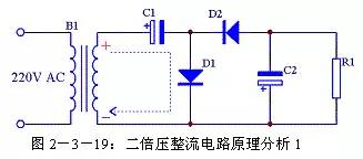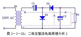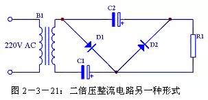 二倍壓整流電路還有另外一種形式的畫法,見圖2-3-21,其原理與圖2-3-18完全一致,只是表現形式不一樣。