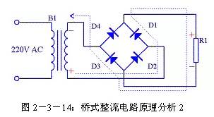 由于全波整流電路需要特制的變壓器,制作起來比較麻煩,于是出現了一種橋式整流電路。這種整流電路使用普通的變壓器,但是比全波整流多用了兩個整流二極管。由于四個整流二極管連接成電橋形式,所以稱這種整流電路為橋式整流電路。