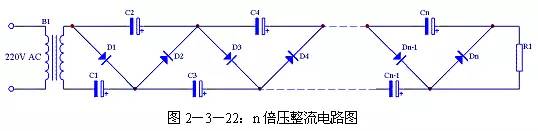 二倍壓電路還可以很容易的擴展為n倍壓電路,具體電路見圖2-3-22。