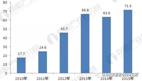 2010-2015年燃料電池系統(tǒng)出貨量(單位:千套)