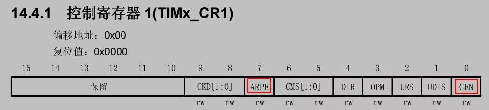 6、自動重裝載預裝載允許位(ARPE) 及定時器使能