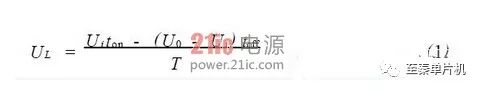 其中,UL 為電感兩端電壓在一個開關(guān)周期內(nèi)的平均值;U0 為輸出電壓;Ui 為輸入電壓;T 為開關(guān)周期;ton為Q3 處于通態(tài)的時間;toff 為Q3 處于斷態(tài)的時間。令UL = 0 ,在電感電流連續(xù)的工作過程中有: