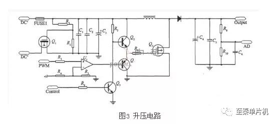 2、升壓電路電能的輸入轉(zhuǎn)化環(huán)節(jié)由開關(guān)電源電路和調(diào)壓電路兩部分組成。開關(guān)電源將輸入的工頻交流電轉(zhuǎn)化為18V/ 5 A 直流電輸出。由于當(dāng)前開關(guān)電源技術(shù)已經(jīng)相當(dāng)成熟,在此就不再贅述。升壓電路的作用是將開關(guān)電源輸出的直流電調(diào)節(jié)轉(zhuǎn)化為電池組充電所要求的電壓、電流,并能夠根據(jù)充電狀態(tài)對輸出電壓、電流進行實時調(diào)節(jié)。升壓電路如圖3 所示。