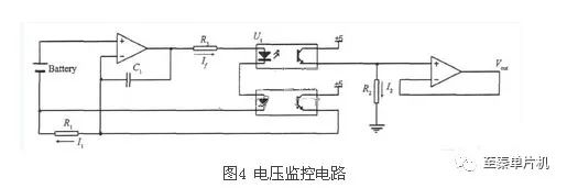 因此只需要調(diào)節(jié)PWM 輸出的占空比,就能有效地控制電池的充電電壓。由于單個鋰電池的電壓過小,為得到更大的工作電壓,一般需要將鋰電池串聯(lián)使用。電池組充電過程中,需要對每個電池的電壓情況進行實時監(jiān)控,以保證每個電池工作在正常工作狀態(tài)下,避免發(fā)生過充現(xiàn)象,損壞鋰電池。串聯(lián)鋰電池電池組中,各個鋰電池的基準(zhǔn)電平不同。假設(shè)電池組中的電池電壓分別為a1 , a2 , ?,則對地第一節(jié)電池電壓為a1 , 第二節(jié)電池電壓為a1 + a2 , 以此類推。在電壓監(jiān)控中我們需要對各個電池的實時電壓進行比較,就必須設(shè)計一定的電路,將各個電池的電壓轉(zhuǎn)化到同一基準(zhǔn)上。采取光耦隔離取樣的方法可以實現(xiàn)電平轉(zhuǎn)化,考慮到線性光耦價格是普通光耦的10 倍以上,出于工程中成本控制需要,將普通光耦線性化連接以實現(xiàn)電壓的采集和實時監(jiān)控。