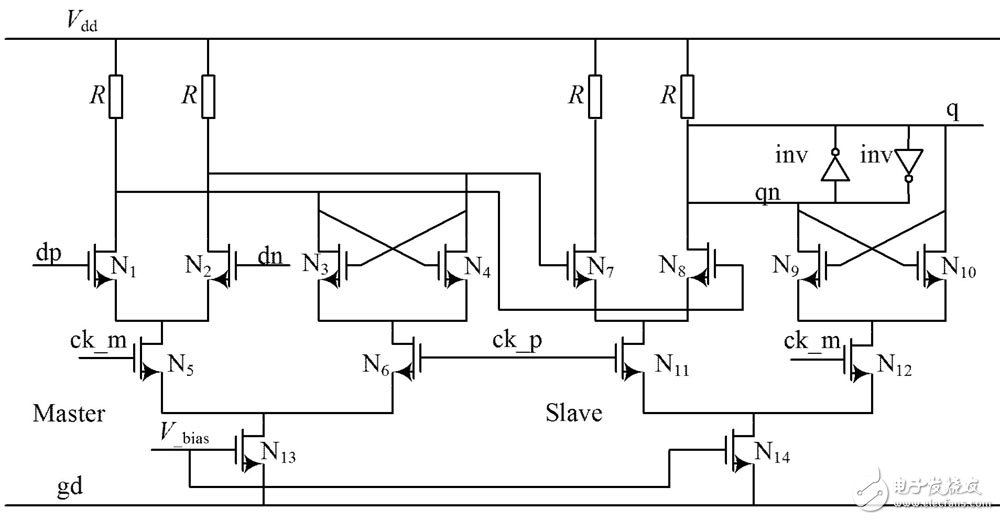 圖2 CML 鎖存器構(gòu)成的主從式觸發(fā)器電路