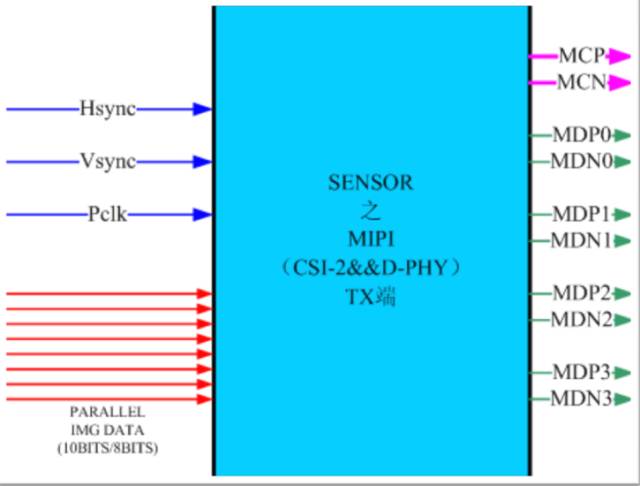 并口需要Vsync:幀同步信號Hsync:行同步信號和8條數(shù)據(jù)線,但這10根線,mipi只需要5根。所以,我行,我來!