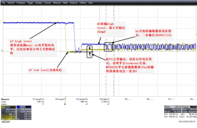 mipi的信號線是一對差分線,理論上可以高電平傳一個數(shù)據(jù),低電平也傳一個,速度又快,功耗又小。很多時候,平臺端的mipi時序和Sensor端如果不匹配,就會出問題。硬件問題的話,就亮信號!