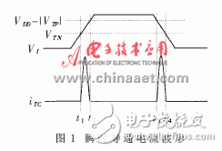 由此可見,PTC隨著電源電壓VDD或脈沖頻率f的增加而增加,并且與脈沖電流的波形有關(guān)。如果電流波形峰值大,過渡過程中導(dǎo)通持續(xù)時(shí)間長,則PTC增大。影響電流脈沖波形形狀的因素比較多,例如,輸入電壓VI跳變過程較慢,則脈沖電流iTC持續(xù)時(shí)間就比較長;而MOS晶體管的開啟電壓低、跨導(dǎo)大,則脈沖電流iTC的峰值也大。
