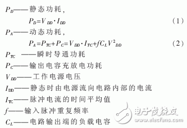 從以上對(duì)CMOS電路的功耗分析可以看出,系統(tǒng)的總功耗與系統(tǒng)的電源電壓有很大關(guān)系。而動(dòng)態(tài)功耗除了與電源電壓的平方有關(guān)外,還與其工作脈沖重復(fù)頻率、脈沖波形以及輸出容性負(fù)載有關(guān)。