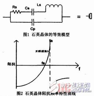圖2表示的是晶體的頻率特性,可以看到該晶體存在著串聯(lián)諧振和并聯(lián)諧振兩個(gè)諧振點(diǎn),在振蕩時(shí)晶體就工作在這兩個(gè)諧振點(diǎn)之間,表現(xiàn)為電感特性。