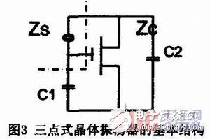 晶體振蕩器的實(shí)現(xiàn)方式有很多種,最常見的是三點(diǎn)式結(jié)構(gòu),如圖3。