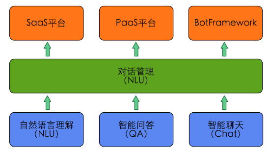 典型的智能對話交互框架如圖 1 所示。其中,語音識別模塊和文本轉(zhuǎn)語音模塊為可選模塊,比如在某些場景下用戶用文本輸入,系統(tǒng)也用文本回復(fù)。自然語言理解和對話管理是其中的核心模塊,廣義的自然語言理解模塊包括對任務(wù)類、問答類和閑聊類用戶輸入的理解,但在深度學習興起后,大量端到端(End-to-End)的方法涌現(xiàn)出來,問答和聊天的很多模型都是端到端訓練和部署的,所以本文中的自然語言理解狹義的單指任務(wù)類用戶輸入的語義理解。在圖 2 所示的智能對話交互核心功能模塊中,自然語言理解和對話管理之外,智能問答用來完成問答類任務(wù),智能聊天用來完成閑聊類任務(wù)。在對外輸出層,我們提供了 SaaS 平臺、PaaS 平臺和 Bot Framework 三種方式,其中 Bot Framework 為用戶提供了定制智能助理的平臺。