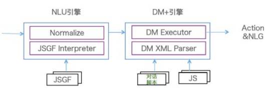 第三,設(shè)計了對話面向開發(fā)者的方案,稱之為 Open Dialog,背后有一個語言理解引擎和一個對話引擎。面向開發(fā)者的語言理解引擎是基于規(guī)則辦法,能夠比較好地解決冷啟動的問題,開發(fā)者只需要寫語言理解的 Grammar,基于對話描述語言開發(fā)一個對話過程,并且還有對數(shù)據(jù)的處理操作。這樣,一個基本的人機對話就可以完成了。