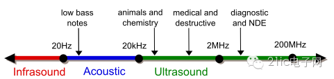 人們可以聽到的聲音的頻率為20Hz~2KHz,也就是可聽聲波,超出此頻率范圍的聲音,20Hz以下的聲音稱為低頻聲波,20KHz以上的聲音稱為超聲波(Ultrasound),一般說話的頻率范圍是10Hz-8KHz。超聲波方向性好,穿透能力強(qiáng),易于獲得較集中的聲能,在水中傳播距離遠(yuǎn),超聲波因其頻率下限大約等于人的聽覺上限而得名。