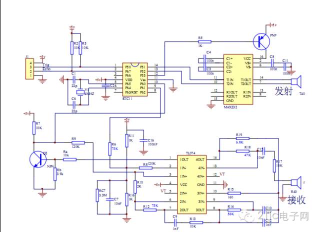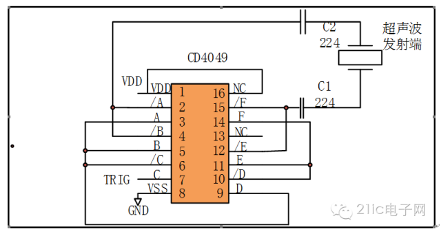 圖6 出了超聲測距模塊的發(fā)射端電路。