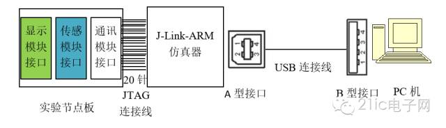 實(shí)驗(yàn)原理超聲測距傳感器實(shí)驗(yàn)環(huán)境由PC機(jī)(安裝有Windows XP操作系統(tǒng)、ADS1.2集成開發(fā)環(huán)境和J-Link-ARM-V410i仿真器)、J-Link-ARM仿真器、NXP LPC2378實(shí)驗(yàn)節(jié)點(diǎn)板、超聲測距傳感器、實(shí)驗(yàn)?zāi)K和LCD顯示實(shí)驗(yàn)?zāi)K組成,如圖11所示。