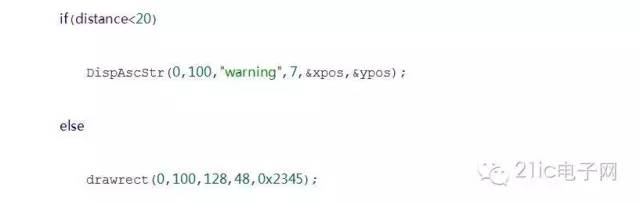 //模仿倒車,當(dāng)距離小于20cm時(shí)發(fā)出警告,并顯示當(dāng)前距離值