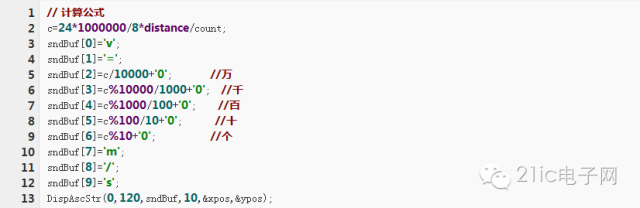 首先由發(fā)射程序發(fā)射10us的高電平觸發(fā)信號,控制超聲波發(fā)射器發(fā)射8個40KHz的方波。發(fā)射器發(fā)射完信號,接收器回波電平將拉高。然后開啟定時(shí)器,例如在定時(shí)器輸入頻率為f=12MHz,進(jìn)行N=8分頻后每個計(jì)數(shù)周期為 。再延時(shí)100us左右以避免發(fā)射探頭的余振的干擾,然后通過在while循環(huán)中查詢外部中斷是不是已經(jīng)捕獲到回波信號,然后獲得計(jì)時(shí)器計(jì)數(shù)值count,計(jì)算距離值。去掉多余的計(jì)數(shù)誤差后 。打開工程Distance,修改Main.c中的內(nèi)容如下。/*********************頭文件及定義*************************/#include "LPC23xx.h"#include "Lcd.h"#include "config.h"void delay(uint32 dly){uint32 i;for(; dly>0; dly--)for(i=0; i<1000; i++); ? ? ? ? ?// 約為100us}void ?delay10us(uint32 ?dly){uint32 ?i;for(; dly>0; dly--)for(i=0; i<160; i++); ? ? ? ? ?// 約為10us}void ClearRect(int index){switch(index){case 1:drawrect(0,12,128,16,0x2345);break;case 2:drawrect(0,40,128,48,0x2345);break;case 3:drawrect(0,100,128,48,0x2345);break;default:break;}}void LCD_Frame()