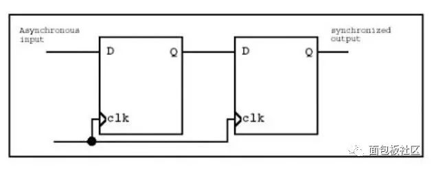 設(shè)計(jì)數(shù)字電路時(shí)大家都知道同步是非常重要的,特別當(dāng)要輸入一個(gè)信號(hào)到一個(gè)同步電路中,但是該信號(hào)由另一個(gè)時(shí)鐘驅(qū)動(dòng)時(shí),這是要在接口處采取一些措施,使輸入的異步信號(hào)同步化,否則電路將無法正常工作,因?yàn)檩斎攵撕芸赡艹霈F(xiàn)亞穩(wěn)態(tài)(Metastability),導(dǎo)致采樣錯(cuò)誤。