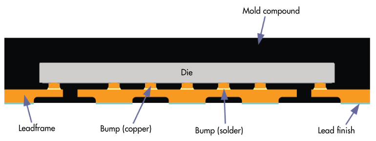 倒裝芯片引線框架結構有助于充分提高引線封裝的功耗能力。