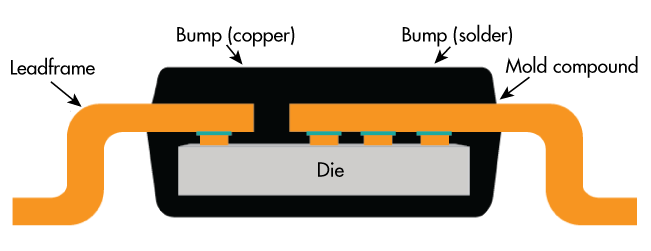 圖 14: FCQFN 封裝在芯片的表面采用了多排銅凸點粘接至引線框架
