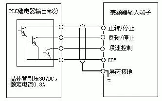 圖1B晶體管型PLC輸出與變頻器連接的運(yùn)行方式