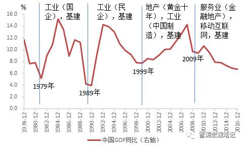 回顧中國改革開放至今的38年,每個朱格拉周期也對應(yīng)了不同的主導(dǎo)產(chǎn)業(yè):