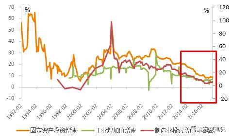 2013年開始,中國GDP增速下臺階,工業(yè)產(chǎn)出和固定資產(chǎn)投資反映出的舊經(jīng)濟開始在底部鈍化。舊經(jīng)濟的舊周期經(jīng)濟指標(固定資產(chǎn)投資,工業(yè)增加值,制造業(yè)投資)出現(xiàn)鈍化,本質(zhì)是舊經(jīng)濟的鈍化。另一面,新經(jīng)濟正在孕育。