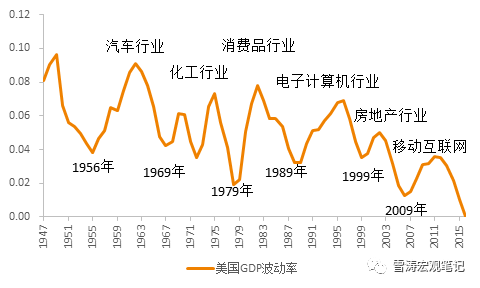 圖1:美國產(chǎn)業(yè)更迭與GDP波動