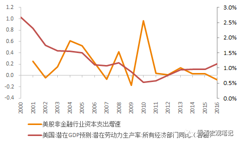 長期看,企業(yè)家總會把錢投到勞動生產(chǎn)率更高的產(chǎn)業(yè)中,而產(chǎn)業(yè)是勞動生產(chǎn)率的載體。所以,不管是中國還是美國,企業(yè)資本開支和勞動生產(chǎn)率(labor productivity)都是高度相關(guān)的。