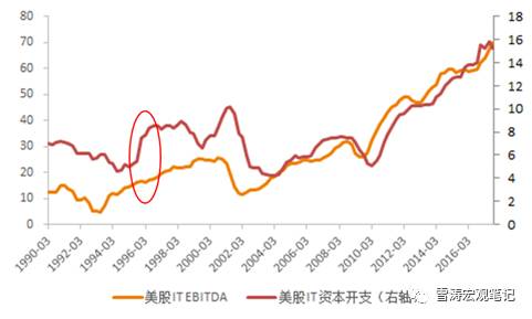 圖5:美股IT EBITDA在2002年左右開始加速趕上CAPEX支出,投資回報率提高