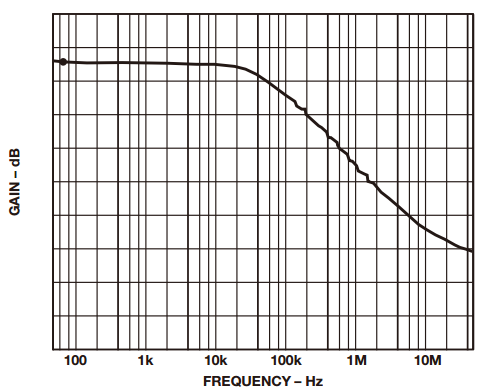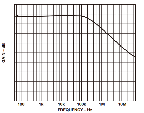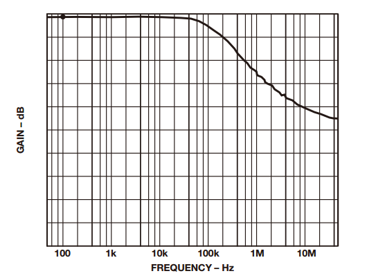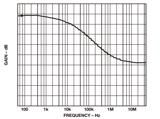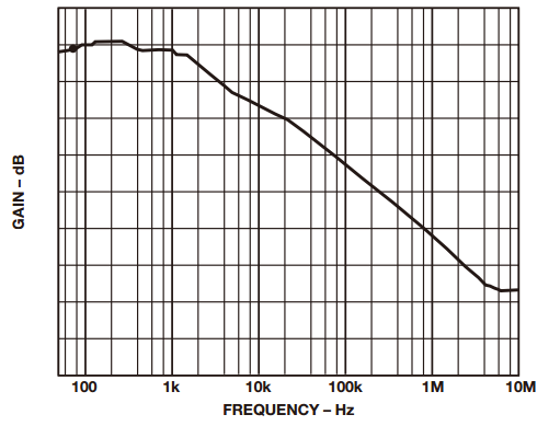 圖3. AMP03(單片差動放大器)共模抑制比與頻率的關(guān)系